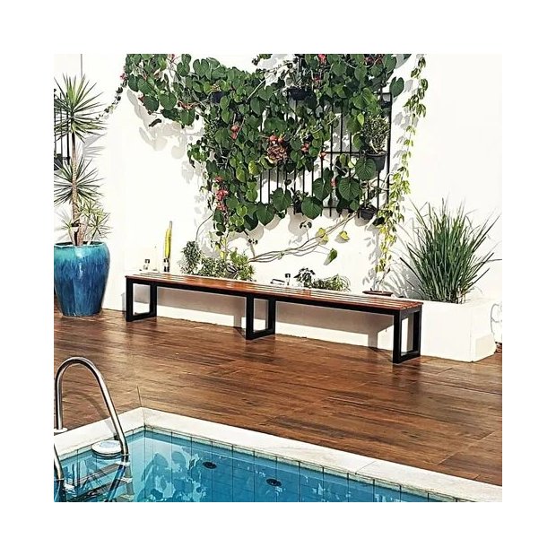 Banco de vestiário Estilo Industrial - área externa, fabricado com metalon 40x40, com pintura eletrostática a pó, nas cores preto e branco.