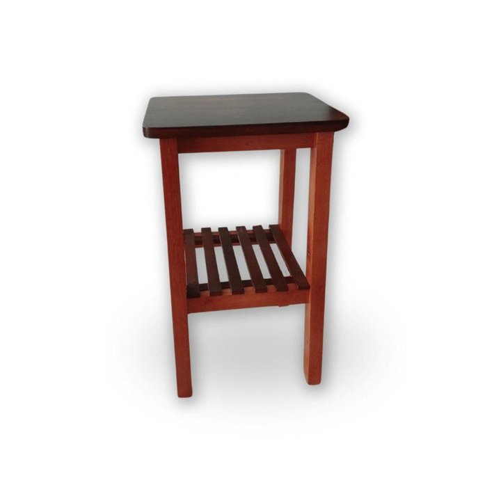 Com pigmentação castanho escuro no tampo e na grade, e base em mel, este banco é ideal para exibir livros e decorações, suportando 10 quilos no tampo e 5 quilos na grade.