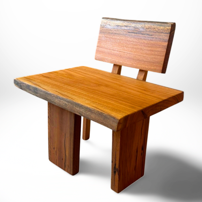Seu encosto ergonômico proporciona conforto e leveza visual, enquanto o design autoral valoriza a simplicidade orgânica da madeira, exaltando seu caráter escultórico. Sem excessos, sem máscaras: apenas matéria-prima nobre e acabamento artesanal que respeita cada curva natural.