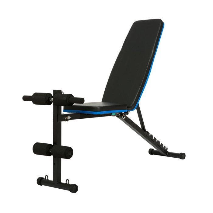 O Banco Livre permite a realização de inúmeros exercícios, seja com utilização de barras, halteres, anilhas ou até mesmo abdominais. Possui apoio para as pernas e sua regulagem oferece 8 posições diferentes nos três principais ângulos: Reto, Inclinado e declinado, com toda segurança e conforto. Conta ainda com anéis para uso de elásticos na base dos pés, pés de borracha para maior agarre e pintura eletrostática texturizada. Modelo: TL-BF-1 Cor: Preta e azul Material: Estrutura em aço carbono Acabamento: Recobrimento sintético Capacidade: Suporta até 180 Kg Dobrável: Sim, para fácil armazenamento Posições de regulagem da inclinação: 8 (Ângulos retos, inclinado e declinado) Apoio para pernas: Regulável em 4 alturas Dimensões do encosto: 69 x 30 cm (A x L) Dimensões do assento: 33 x 30 cm (A x L) Marca: Trevalla Conteúdo da embalagem: 1 Banco Fitness Dimensões aproximadas do produto: 132 x 48,5 x 102 cm (C x L x A) Dimensões aproximadas da embalagem: 77 x 31 x 28 cm (A x L x C) Peso aproximado do produto: 7,7 Kg Peso aproximado da embalagem: 8,6 Kg Informações Adicionais: Com espuma de densidade controlada Informações Importantes: - A compra do produto não acompanha montagem/desmontagem. - Os objetos que ambientam as imagens, não acompanham o produto. - Atenção: As cores das imagens podem sofrer alterações devido a luminosidade, configurações do monitor e até mesmo a percepção do usuário.