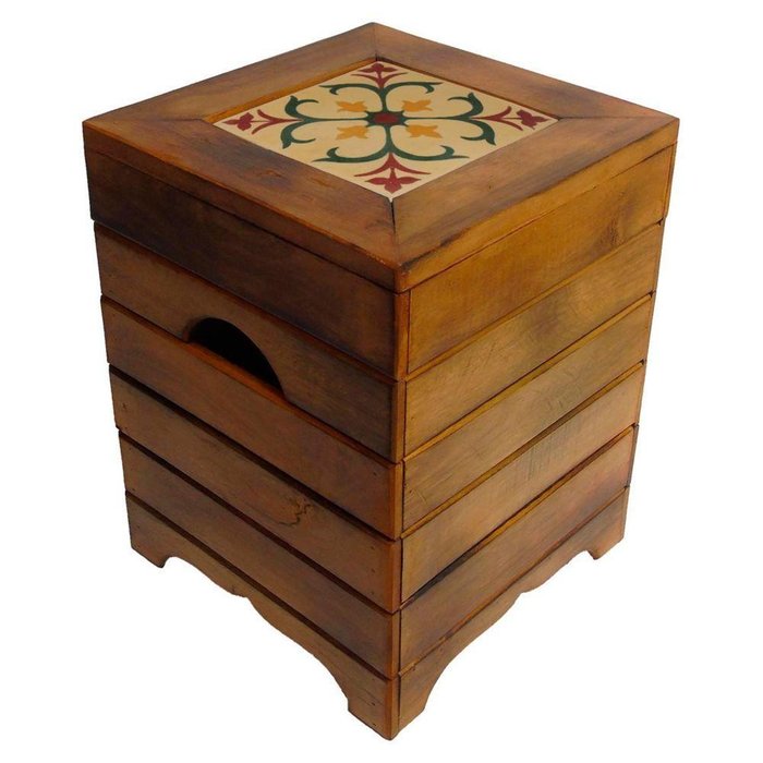 Banco Madeira Volpi Baú Com Ladrilho Hidráulico Azulejo Ladrilho D1