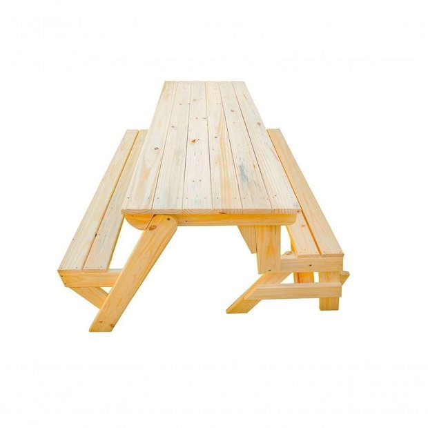Banco-mesa 2 Em 1 - 1,5 Metros BANCO QUE VIRA MESA 1,5 METROS 100% EM MADEIRA MACIÇA DE REFLORESTAMENTO Quer aproveitar aquele espaçinho vazio que tem em casa? Adquira nosso Banco que Vira Mesa, ficará um ambiente mais aconchegante, e com mais utilidade para você e sua família. A madeira utilizada é de alta qualidade, com excelente acabamento e durabilidade. Ideal para áreas internas e áreas externas. Produto prático e versátil, ótimo para otimizar espaços pequenos ou pouco usados. Perfeito para varandas e sacadas com churrasqueira, mas também muito bem aproveitado em um jardim ou área de piscina. Produto fabricado artesanalmente 100% em Madeira Maciça de Reflorestamento, Pinus Natural. Móvel todo colado, parafusado, lixado e preparado para a pintura. Cantos arrendondados, com acabamento perfeito para sua comodidade. Características: Madeira: Pinus NaturalPeso: 25kg*** PRODUTO SEM APLICAÇÃO DE VERNIZ ***Estilo: Assento e Tampo da Mesa Ripado TAMANHO: Em forma de banco: Comprimento: 1,5m; Largura: 75cm; Altura: 90cm.Em forma de Mesa: Comprimento: 1,5m; Largura: 1,40m (medindo no chão de pé a pé); Altura: 78cm. O tampo da mesa possui o comprimento de 1,5m e a largura de 60cm, bem como o assento no modo banco possui 40cm de largura e no modo mesa fica com 10cm de assento cada lado da mesa. Comporta até 3 pessoas no modo Banco e até 6 pessoas no modo Mesa. De modo confortável.Suporta mais de 300kg em cada assento no modo mesa. OBSERVAÇÕES:LEIA ATENTAMENTE, PARA EVITAR POSSÍVEIS ERROS DE INTERPRETAÇÃO.CASO HAJA ALGUMA DÚVIDA, ENTRE EM CONTATO CONOSCO, ANTES DA COMPRA. *** O móvel é enviado pré-montado, com manual de instruções e todo suporte online para a montagem final. As peças são marcadas, fazendo a montagem ser autoexplicativa. *** Aguardamos a sua aquisição para lhe surpreender com este ótimo produto, e tornar suas refeições entre amigos e familiares ainda melhores. OBS.: É MUITO IMPORTANTE que você saiba que por se tratar de um produto de madeira natural, ocorre VARIAÇÕES NAS TONALIDADES e nas CORES da madeira, sendo Madeira 100% em Pinus Natural, HAVERÁ PEQUENOS VEIOS E NÓS e em absolutamente em nada isso compromete a qualidade do produto.