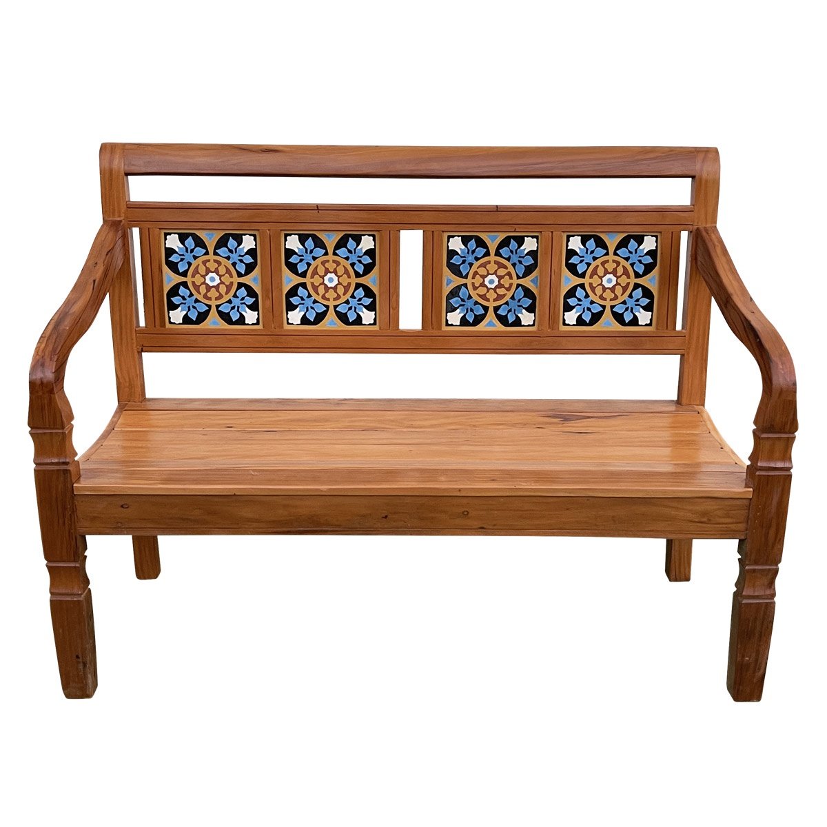 Banco Namoradeira 2 Lugares Ladrilho Azul Madeira Peroba Rosa Sudeste Rústico