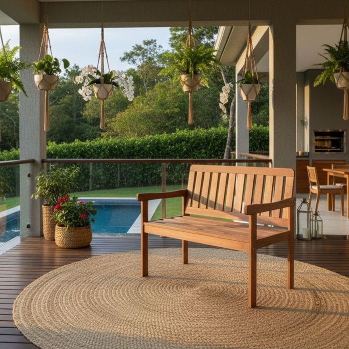 Banco versátil e elegante, se encaixa e adapta a qualquer ambiente, seja externo ou interno.