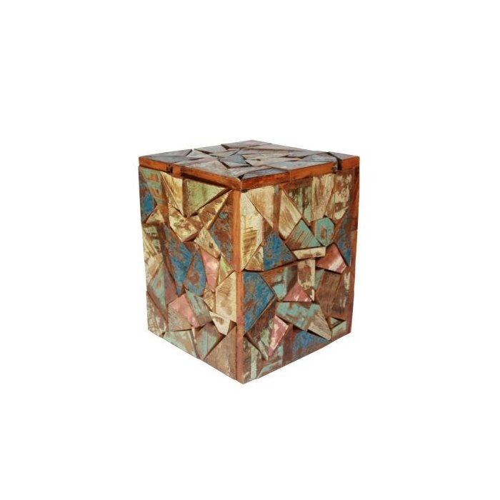 Banco Quadrado Em Madeira Demolição Colorida 35x35x45