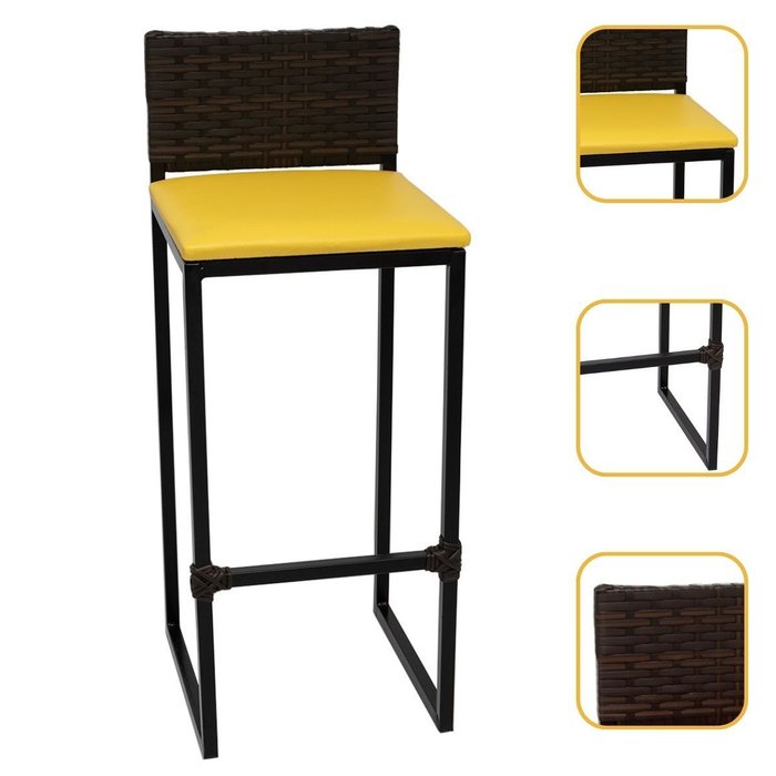 Banco Quadrado Junco Argila para Bancada Alta Cozinha Área Gourmet Bistrô Piscina Bar Amarelo