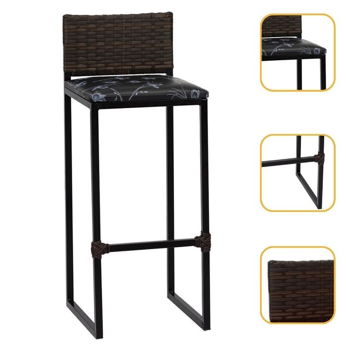 Banco Quadrado Junco Argila para Bancada Alta Cozinha Área Gourmet Bistrô Piscina Bar Floral Preto
