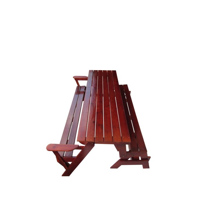 Banco que Vira Mesa 1,5 Metros com Banquetas e Verniz na Cor Mogno Mogno