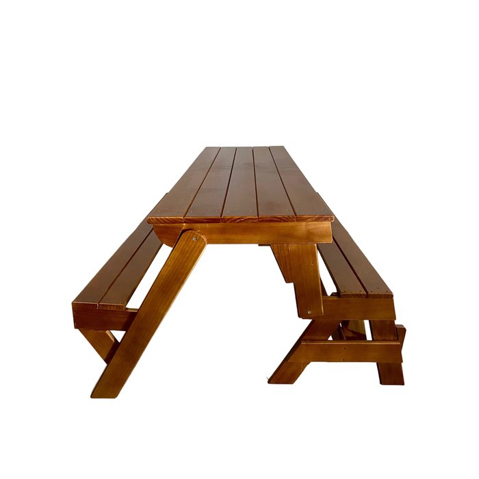 Banco que Vira Mesa 1,5 Metros em Pinus Tratado Autoclave com Verniz Marítimo Área Externa IMBUIA