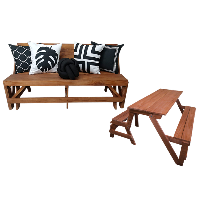 Banco que Vira Mesa 1,50m Área Interna + 4 Almofadas Decorativas