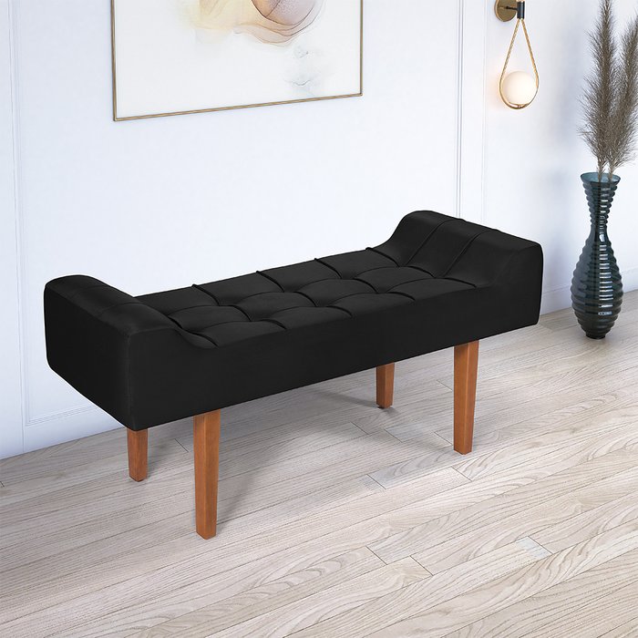Banco Recamier Daia 1,30 em Veludo Preto para Quarto Sala Pés em Madeira