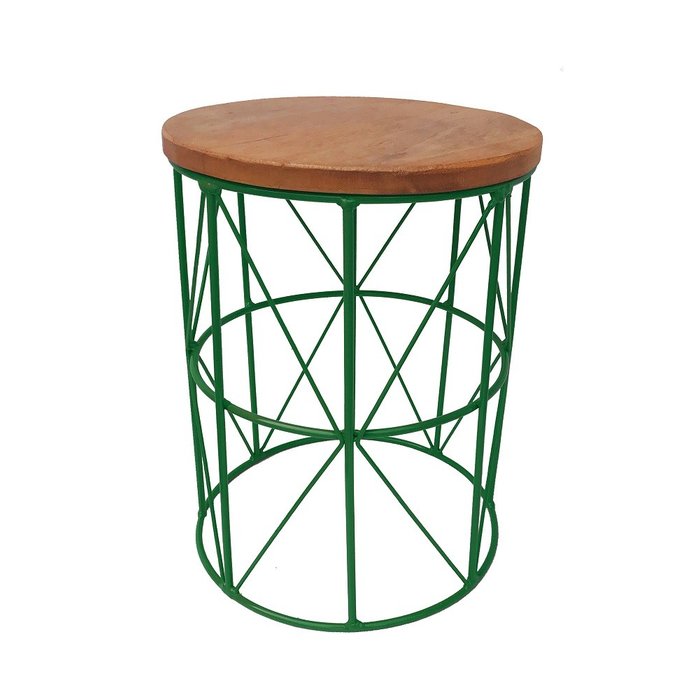 Banco Redondo Artesanal De Ferro Decoração Interna - Verde
