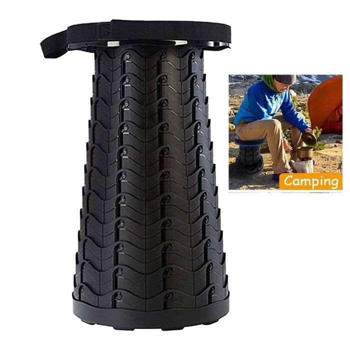 Banco Retratil Banqueta Telescopica Banquinho Dobravel Alça Transporte Viagem Acampamento Passeio Ar Preto