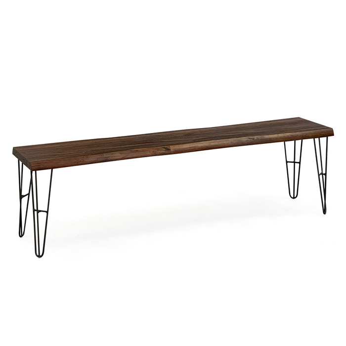 Banco Rústico de Madeira Maciça - Pin Live Edge Grafite + Rustic Brown
