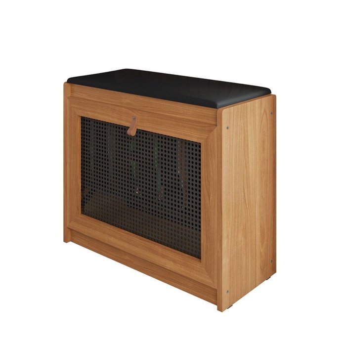 Banco Sapateira Plenitude Madeira Detalhe em Tela Ratan Acento Almofadado Corino Preto - Ofertamo castanho