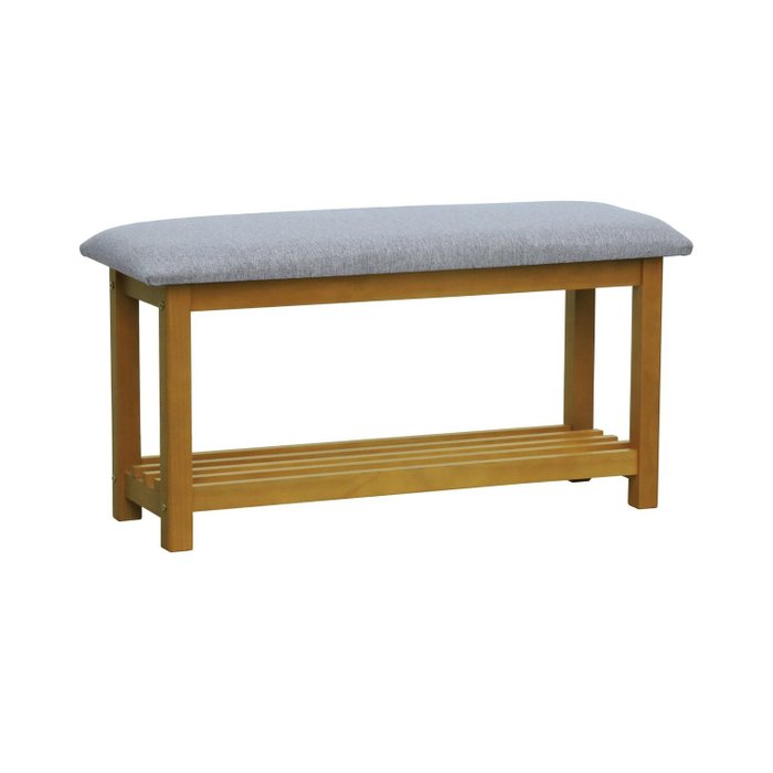 Banco Sapateira Viena Madeira Maciça Assento Estofado Linho Natural/Cinza