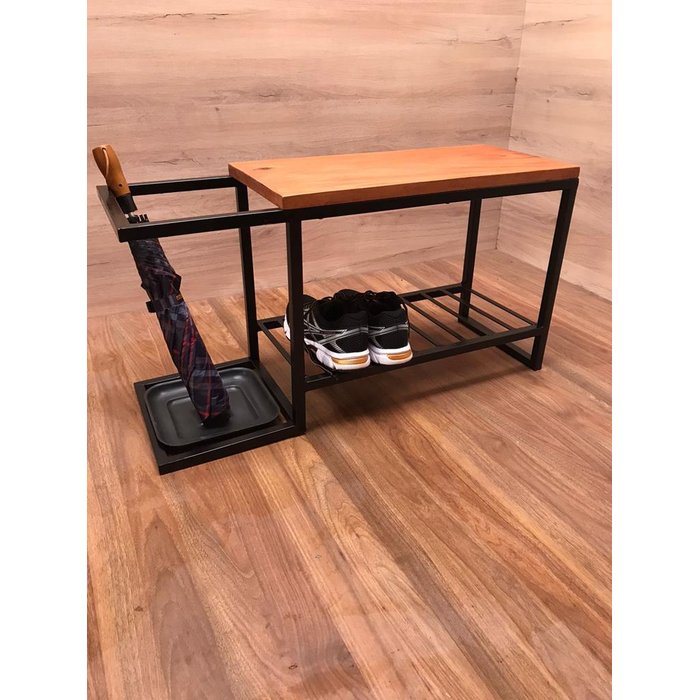 Banco sapateiro porta guarda chuva e produzido com a estrutura de ferro com pintura eletrostática (não enferruja) possui ainda o assento em madeira de demolição mista, e a maneira mais fácil de manter a sua casa organizada, evitando de entrar com os sapatos sujos ou o guarda chuva molhado, com estilo industrial essa sapateira banco é a maneira mais elegante de manter sua entrada organizada e livre de desordem. Inteligentemente projetado com materiais naturais, este banco com sapateira e porta guarda-chuva é perfeito para organizar os itens que costumam ficar jogados no corredor, varanda ou entrada.