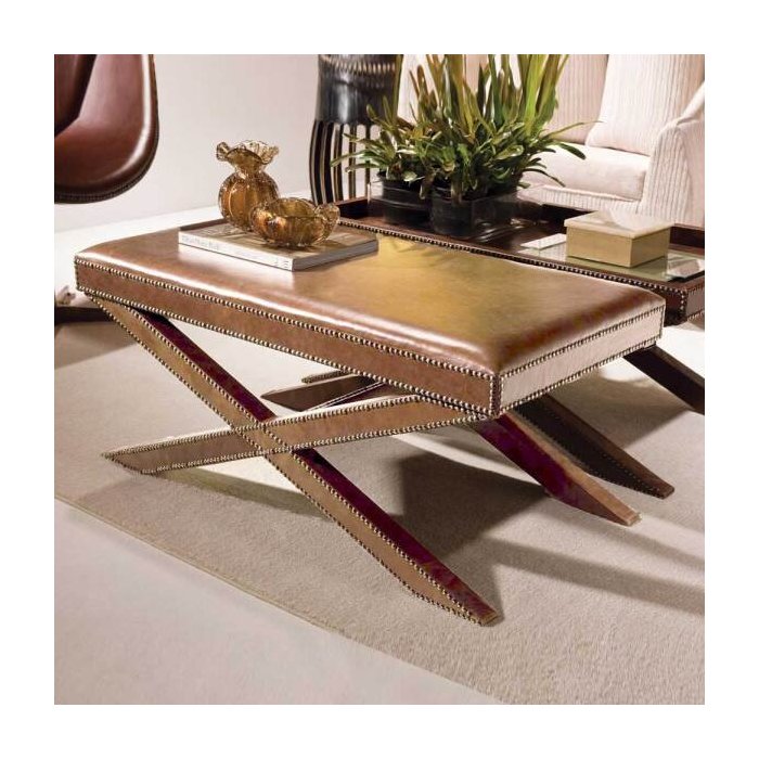 Banco Sense Estofado com Tachas em Couro Caramelo Nolan Collection