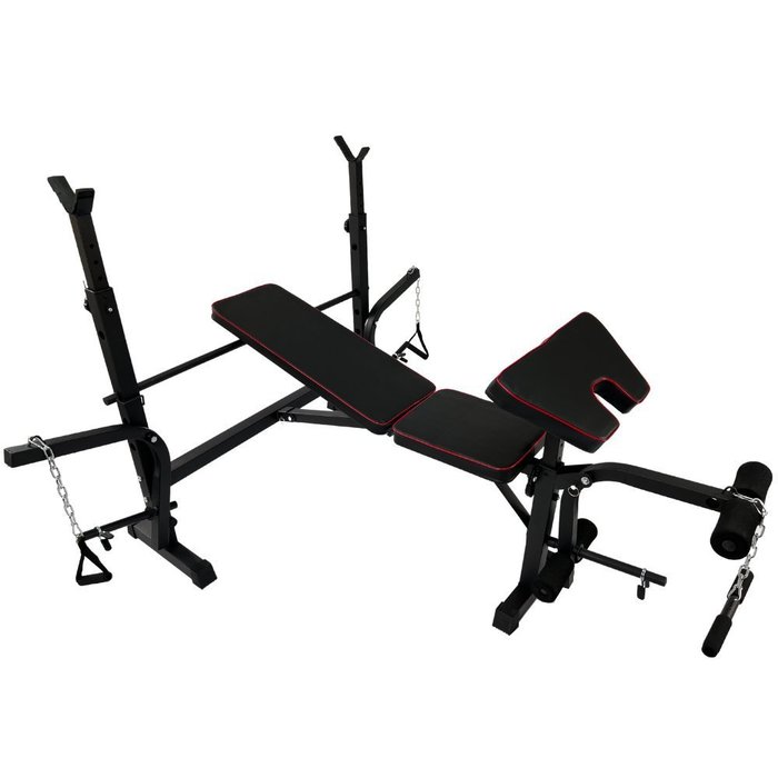O Banco Supino Multifunções Yangfit é um equipamento exclusivo e repleto de funções para que deseja malhar e fortalecer toda a musculatura do corpo todo com eficiência e praticidade. Isso porque além de contar com as funções do banco supino reto, inclinado e declinado, oferecendo ao praticante diferentes possibilidades de ajustes de inclinação, o Banco Supino Multifunções Yangfit também conta com Apoio Scott, Suporte Cavalete, Cadeira Extensora e Suporte com puxadores para crucifixo peitoral. Isso faz com que o Banco Supino Yangfit seja multifunções, possibilitando a realização de dezenas de exercícios de fortalecimento muscular para os grupos superiores, inferiores e regiões centrais do corpo como abdômen e core. Treine com mais qualidade, versatilidade e facilidade com um único equipamento! A estrutura robusta e totalmente segura do Banco Supino Multifunções da Yangfit faz com que a academia chegue até sua casa preservando a qualidade e a intensidade dos exercícios de musculação. Além disso, por ter estrutura dobrável, você poderá guardar o Banco Supino Multifunções Yangfit de forma fácil e sem complicações. Desenvolva a musculatura do corpo todo treinando pesado e combinando diferentes cargas de acordo com seus objetivos com um único equipamento! Principais funções do Banco Supino Completo da Yangfit: Supino reto; Supino Inclinado; Supino declinado; Banco para abdominal; Suporte Cavalete para levantamento de peso; Suportes para crucifixo peitoral com puxadores; Cadeira Extensora; Flexão de Pernas; Banco Scott; Extensão Lombar; Remo com Halteres e Rosca bíceps. E principais benefícios e diferenciais: Totalmente ajustável; Uma verdadeira estação de treino completa; Estrutura robusta e altamente resistente; Praticidade e versatilidade de treino; Cargas adaptáveis; Dezenas de exercícios de força; Aumento de resistência muscular; Fácil de adaptar a cada treino; Dobrável, compacto e fácil de acomodar. Especificações Técnicas: Estrutura: Aço Metalon Industrial, com espessura de 2,5mm; Material do Assento e Encosto: MDF com enchimento de camadas de EVA espuma aglomerado, e revestimento em PU; 5 Ajuste de inclinação no encosto; 5 Ajustes de altura no Suporte Cavalete; 5 Ajustes de altura no Apoio Scott; Peso suportado até 300kg; Largura do Assento: 30cm; Largura do Encosto: 30cm; Largura do Suporte Cavalete: 110cm; Altura do Banco: 52cm; Altura do Apoio Scott: 70cm a 80cm ajustável; Altura do Cavalete: 102cm a 118cm ajustável; Peso do equipamento: aproximadamente 25kg; Não acompanha halteres e anilhas.
