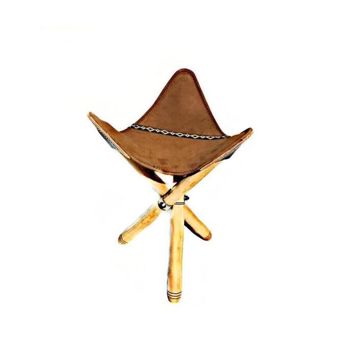 Banco Tripé De Couro Gaucho Laço Comprido Marrom Claro