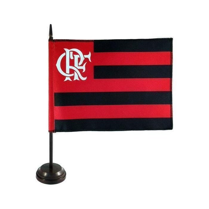Bandeira de Mesa do Flamengo fabricada pela Myflag para o torcedor do Mengão poder ilustrar com elegância a sua grande paixão. Fabricada com pedestal de plástico rígido imitando madeira medindo 32 centímetros de altura e base de 5 centímetros de diâmetro e bandeira em 100% Poliéster medindo 26 x 17 centímetros.