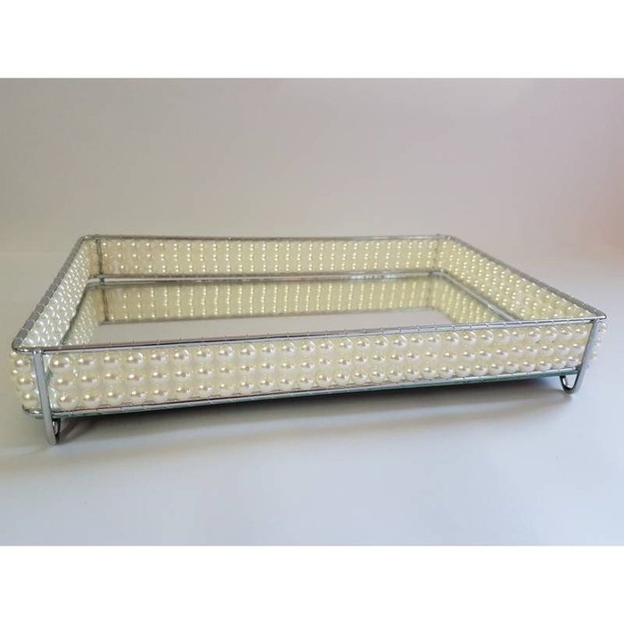 Bandeja Artesanalle Pérola 15 x 25 cm de vidro Espelhado Hara Prata 1392-80