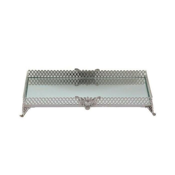 Bandeja para Lavabo com fundo em Espelho, Borda Rendada e Detalhe em Brasão, 30 x 22 cm, em Prata Sheffield. Uma bandeja tão sofisticada pede a saboneteira em prata e cristais! X Um lavabo harmonioso, cheio de requinte e detalhes surpreendentes! Bandejas no lavabo se tornaram tendência nos últimos tempos pela sua graciosidade e praticidade na decoração. Elas delimitam o espaço para os acessórios criando um ambiente mais organizado e marcado pelo luxo. Além disso, a bandeja é essencial para a higiene, pois evita o acúmulo de água em baixo das peças que contribui para proliferação de microrganismos. As bandejas em Sheffield Plate são encontradas em diversos formatos: linhas retas e básicas, com fundo em espelho ou com tela de metal lembrando uma delicada renda, escolha a que combina mais com sua decoração! Enfeite sua bandeja com velas, vasos e saboneteiras X O processo conhecido como Sheffield Plate, produz peças duráveis, de um requinte extremo e alta durabilidade das peças. A empresa responsável pela técnica aqui no Brasil está a mais de 60 anos produzindo peças belíssimas e ricas em detalhes, como essas bandejas com detalhes de brasão, que podem adornar seu lavabo, cantinho de make ou na decoração em geral. Bandejas prata com fundo em espelho dão impressão de amplitude ao lavabo X Uma Bandeja Espelho para Lavabo em Sheffield Plate Cód.: 7724.2 Material: Prata Sheffield e Espelho Altura: 4 cm Largura: 22 cm Comprimento: 30 cm Cor: Prata Cuidados Recomendamos a lavagem com água e sabão neutro. Para remover manchas umedeça um pano em vinagre ou em suco de limão e esfregue o metal. Pode-se fazer uma solução com vinagre, suco de limão e 1 colher de sopa de sal ou farinha, aplicar na peça e enxaguar. Não utilizar produtos abrasivos.