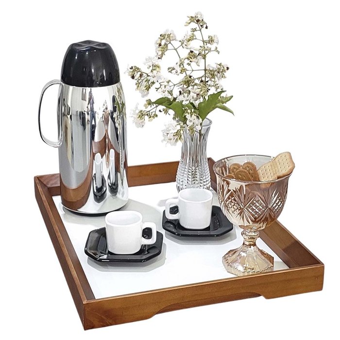 Bandeja Café Bar Bebidas Aparador Xícaras Pequena Decorativa Ambiente Recepção Escritório Sala Madec