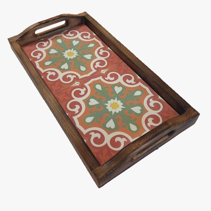 Bandeja Café Da Manhã Grande Com 2 Azulejos Azulejo G3