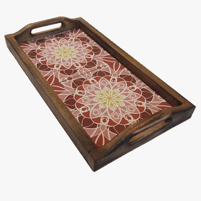 Surpreenda quem você ama levando o café na cama nesta linda bandeja, e deixe seu dia ainda mais feliz. Bandeja produzida em madeira maciça rústica com acabamento de queima japonês shou sugi ban que protege a madeira da ação do tempo e de insetos, proporcionando brilho e realçando a beleza natural da madeira. Possui em seu interior dois azulejos decorado e pensado para seu café da manhã ser mais alegre. Produto totalmente diversificado e diferente que trás consigo um estilo peculiar e multifunções de uso, estimulando a criatividade para deixar o ambiente de sua casa ainda melhor. TAMANHO: Dimensões internas: