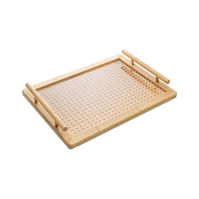 Bandeja com Alca e Fundo em Trelica 39cm X 29cm X 5cm Bambu