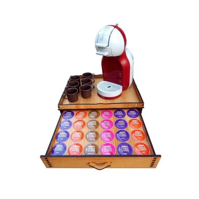 Bandeja com Gaveta para Cápsulas Dolce Gusto - 30 Cápsulas - Imbuia