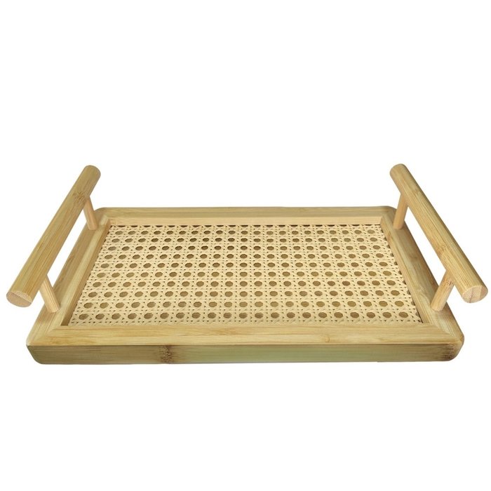Bandeja de Bambu e Palhinha com Alça 35cm X 20cm X 7,5cm - Mimo Style