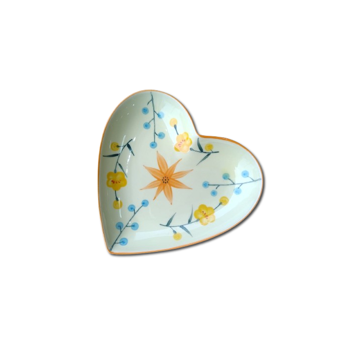 Bandeja de Coração em Cerâmica Amarelo 19x18x3cm - Pracaza amarelo