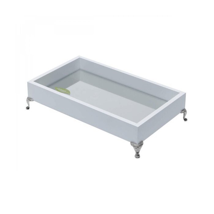 Bandeja de Madeira com Espelho Laqueada Branca 29cmx17cm Rojemac