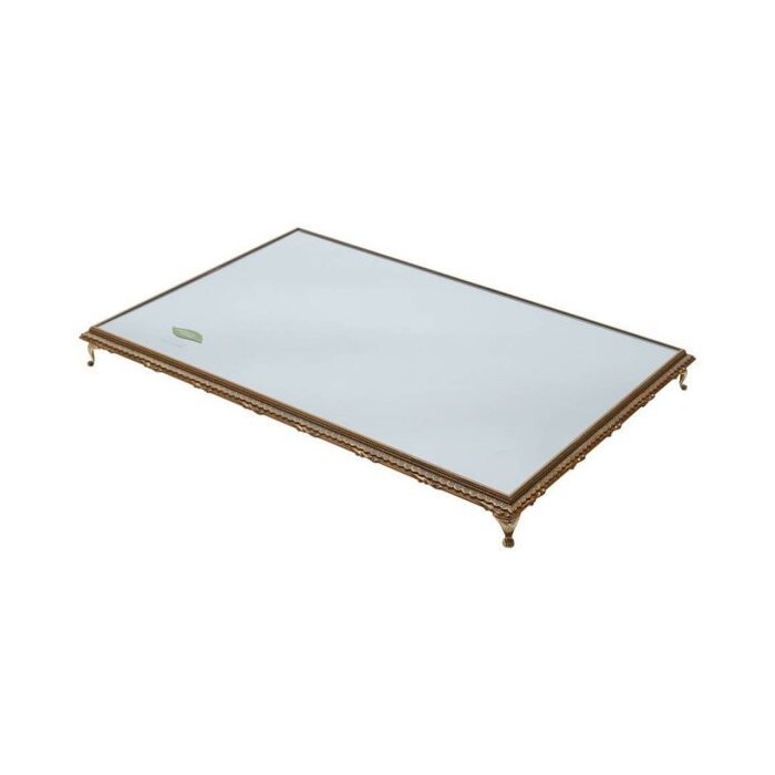 Bandeja de Madeira com Pé Provençal 48cmx27cmx5cm Rojemac Dourado