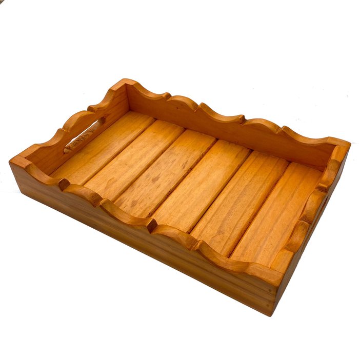 Esta belíssima bandeja é cuidadosamente produzida à mão com madeira maciça de alta qualidade. Com medidas de 45 cm de comprimento, 30 cm de largura e 7 cm de altura, possui duas alças laterais para um transporte seguro e fácil. O acabamento é esculpido à mão, proporcionando um toque artístico à sua aparência, como pode ser visto na imagem do anúncio. Graças à sua construção resistente com madeira de 2 cm de espessura, esta bandeja é extremamente durável. Essa bandeja versátil pode ser usada para uma variedade de ocasiões, desde servir café da manhã até cantinhos de café, bebidas em bares e restaurantes, bem como servir petiscos, doces e salgados. Além disso, ela também pode ser utilizada como um item de decoração para complementar qualquer ambiente.