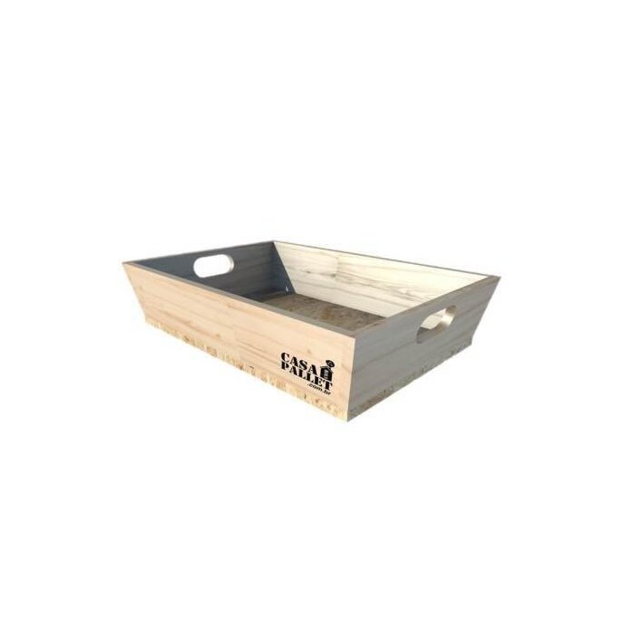 Peça pintada com verniz feita artesanalmente com ripas de paletes reaproveitados, com laterais inclinadas. Foto: Ilustrativa. Peça feita artesanalmente com material reaproveitado, podendo ter pequenas imperfeições, variações de tonalidade e medidas. As peças recebem um carimbo térmico com a logomarca da Empresa. Valores e condições sujeitas a disponibilidade e alteração sem aviso prévio.