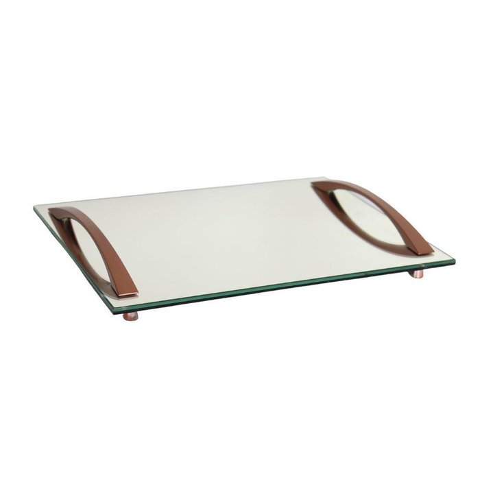 01 Bandeja em base de vidro com dois puxadores alça em metal