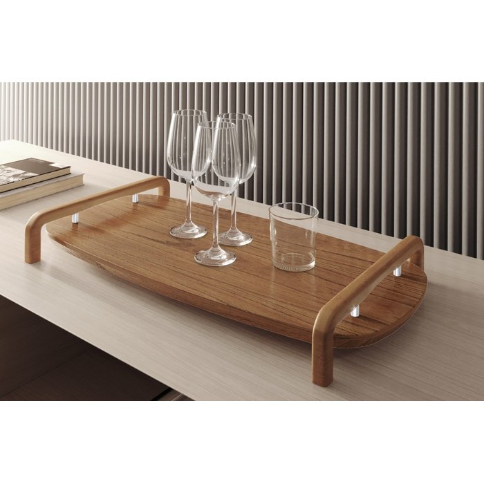 Bandeja Decorativa Barcelona em Madeira e Detalhe Prata:Cinamomo