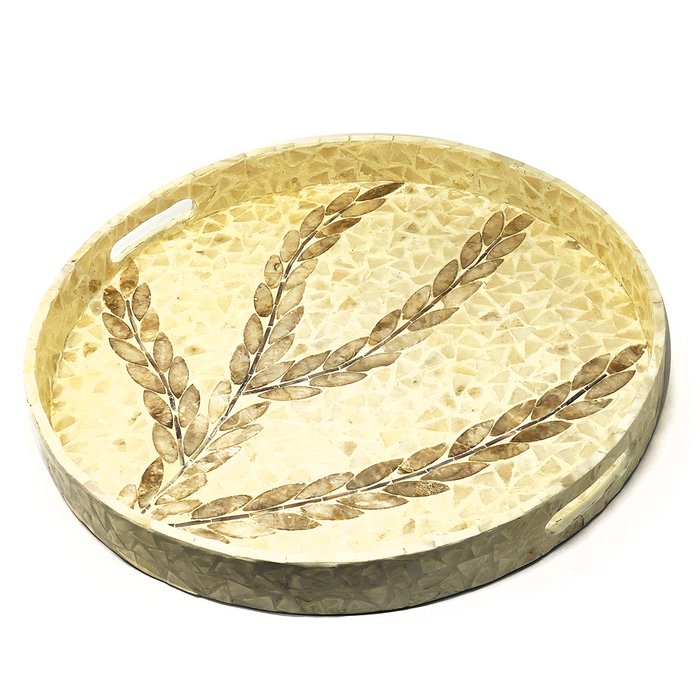 Essa sofisticada peça pode ser utilizada como adorno em centro de mesas, racks, aparador etc. Pode ser exposta com outros objetos de decoração sobre a mesma, bebidas, utensílios ou simplesmente sozinha. Seu design em mosaico se adapta a qualquer tipo de decoração, possui bordas elevadas com alças para garantir a segurança ao transportar.
