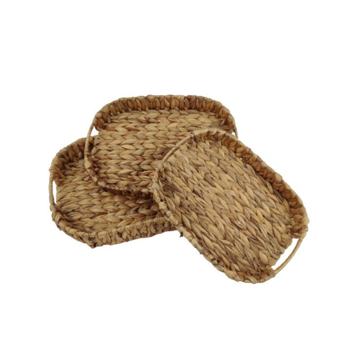 Bandeja Decorativa De Fibra Natural Oval 40/35/30cm Kit 3pc