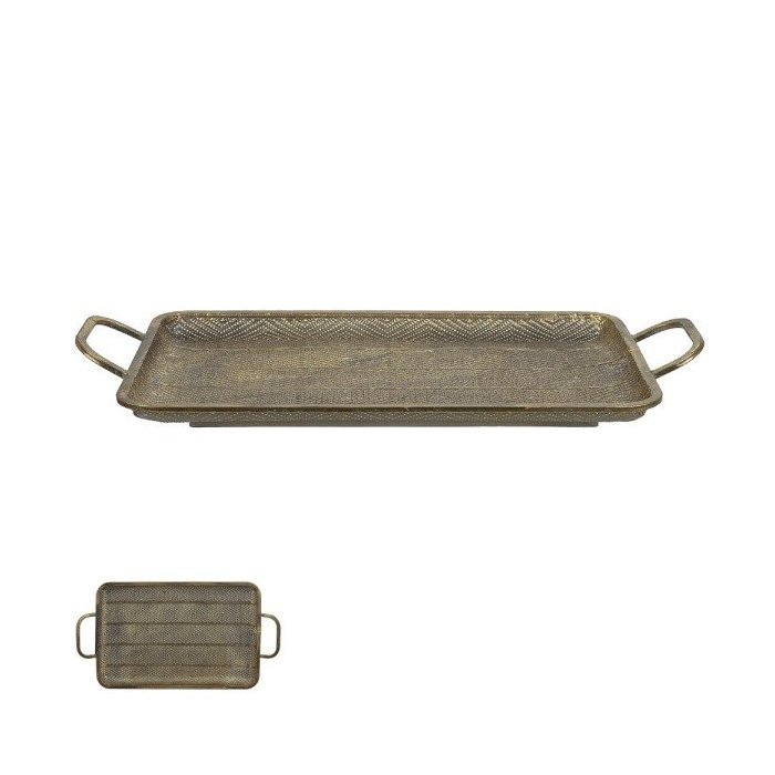 Atualmente, objetos decorativos tem cada vez mais ganhado seu espaço e se tornando indispensáveis na decoração de nossos lares, escritórios ou espaços. As peças decorativas com funcionalidade são a combinação perfeita para os amantes da decoração. Por isso apresentamos para vocês a Bandeja Decorativa na cor Dourada em metal, com um visual rústico e retrô, ela traz consigo um conceito muito utilizado atualmente na arquitetura e decoração de ambientes, esse item sem dúvidas agregará requinte e muito estilo ao seu espaço. Adquira já o seu! Dimensões Altura: 31,5 cm Largura: 59 cm Profundidade: 7,5 cm Especificações do Produto Estrutura: Metal Garantia: 90 dias contra defeito de fabricação Montagem: O produto vai montado Instruções de Limpeza: Utilizar um pano limpo e levemente úmido Você irá receber: 01 volume Observações Relevantes - Todos os produtos vão embalados com total segurança; - As cores dos produtos podem sofrer alterações dependendo do seu monitor; - As imagens são meramente ilustrativas, não acompanham objetos de decoração e eletros; - Confira as dimensões do produto no momento da compra e certifique-se de que passará normalmente por escadas, elevadores, portas e corredores. - Não nos responsabilizamos no ato da entrega por montagens, desmontagens, instalações de produtos, nem utilização de guinchos ou equipamentos similares para acesso a pisos superiores em apartamentos. - Observando as orientações acima, evita-se futuros desagrados ou imprevistos com a entrega do produto. Havendo despesas adicionais, serão de responsabilidade do cliente.