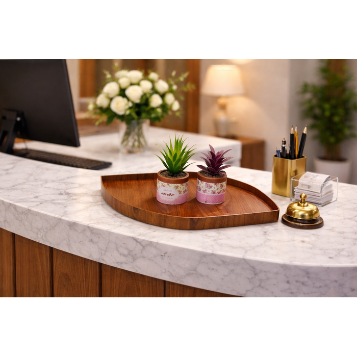 Com sua forma única, a bandeja se integra facilmente a qualquer espaço, criando um visual harmonioso e atraente.