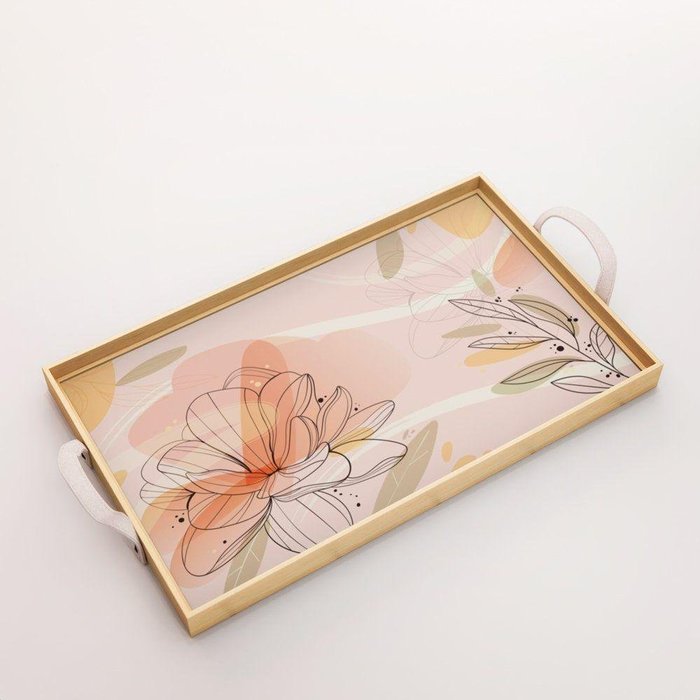 Bandeja Decorativa Grande Flor e Ramo - 45x30cm Clara -