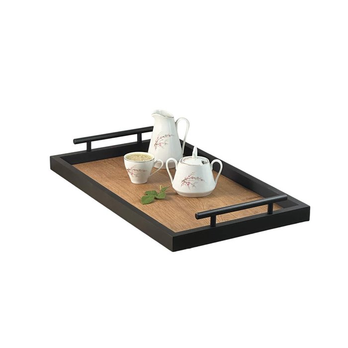Bandeja Decorativa para Cantinho Café Servir Bebidas 31x52 Maraka Preto/madeirado Preto/Madeirado