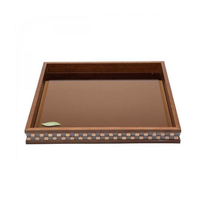 Bandeja Decorativa Quadrada de Madeira com Vidro Bisotê Rojemac Marrom