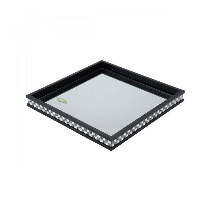 Bandeja Decorativa Quadrada de Madeira com Vidro Bisotê Rojemac Preto
