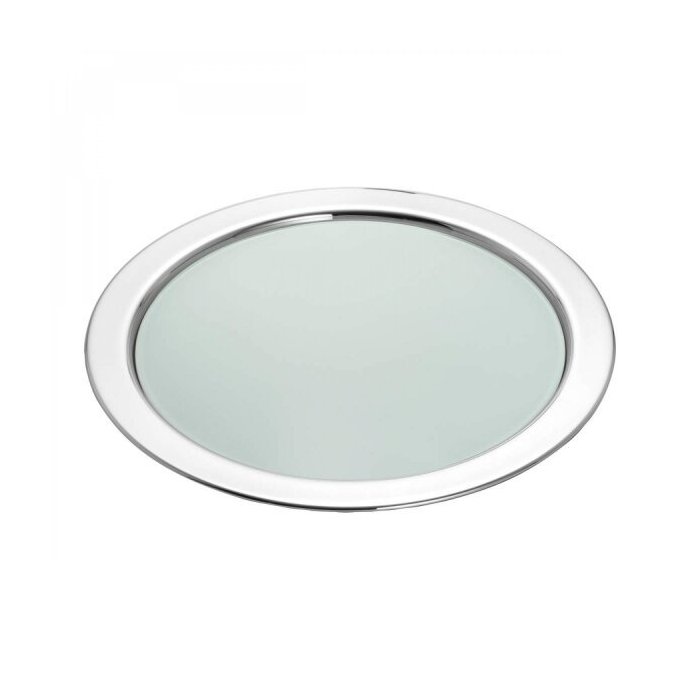 Bandeja Decorativa Redonda Cromada com Vidro Rojemac