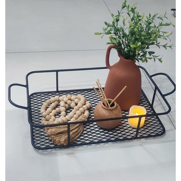 Bandeja Decorativa Sala de Ferro Estilo Industrial Preto fosco